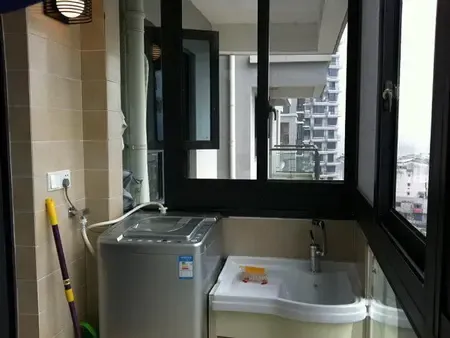 在卫生间空间受限的情况下,如何安置洗衣机的问题。洗衣机放对位置既起到美化家居的作用,又能节省空间。