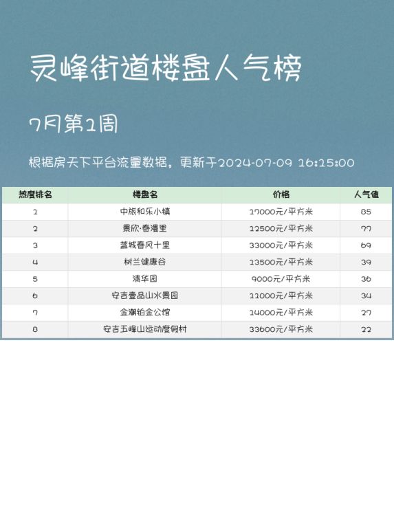 灵峰街道人气楼盘榜单📝——中旅和乐小镇荣登榜首🏆