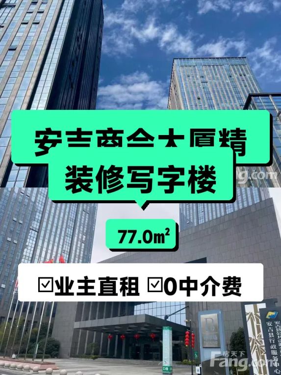 最近空出自家在**安吉商会大厦B座8楼**的写字楼🏢,77㎡精装南向,格局超方正!每天阳光洒进来亮堂堂的☀️,办公心情都变好了~