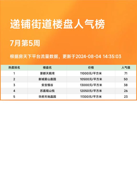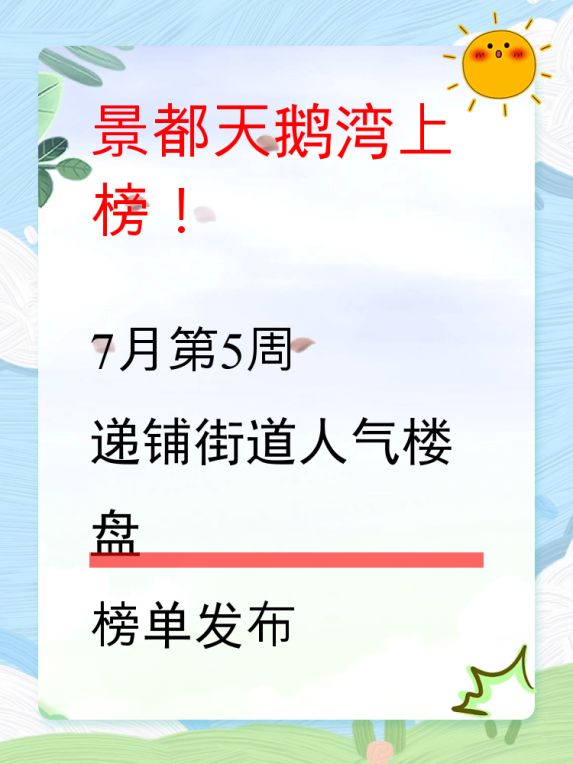 递铺街道人气楼盘榜单:景都天鹅湾夺冠