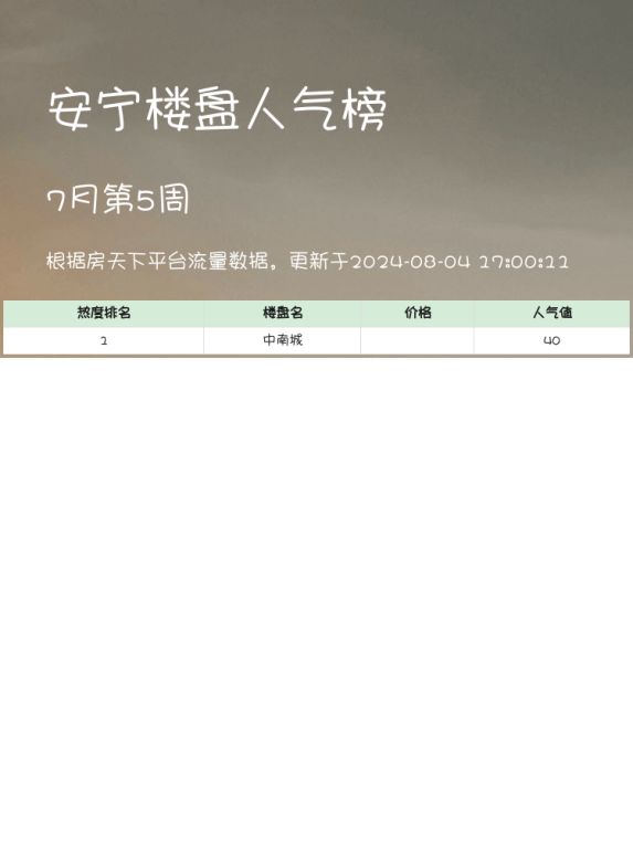 安宁人气楼盘榜大揭秘:中南城荣登热度榜首 🏆
