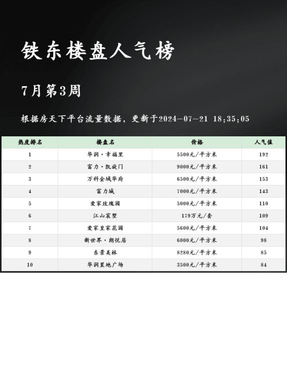 铁东人气楼盘榜单出炉!华润·幸福里位列第一!✨