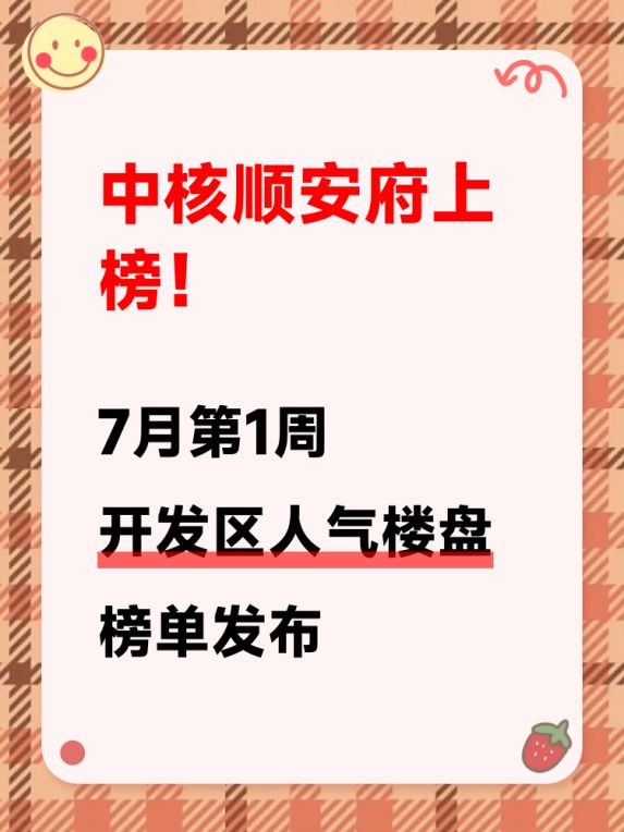 开发区人气楼盘榜单出炉!中核顺安府跃居榜首🔥