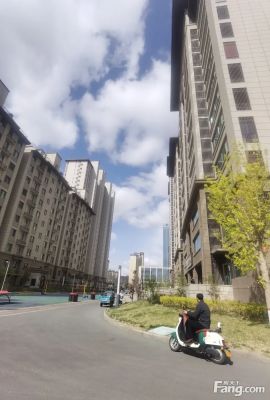 小区绿树成荫,蓝天白云,晴空万里,很是惬意!