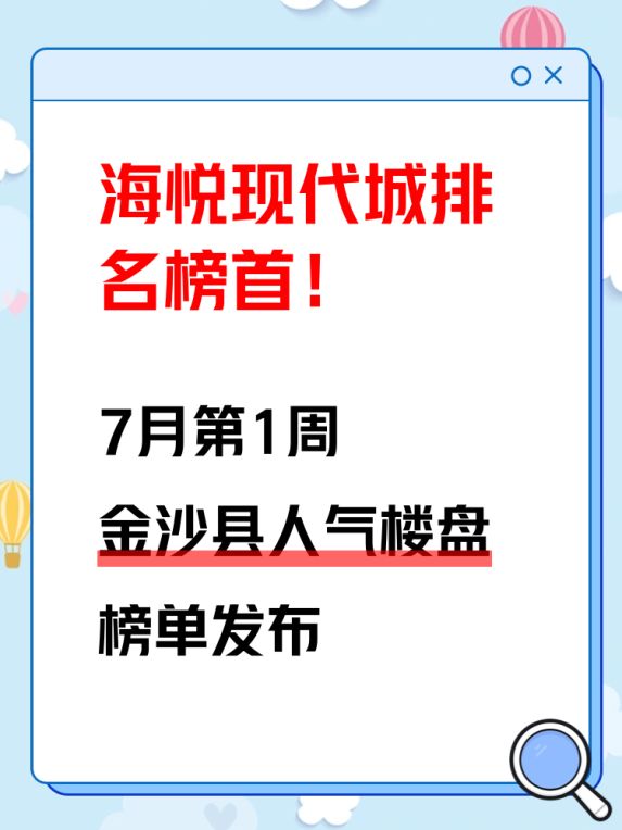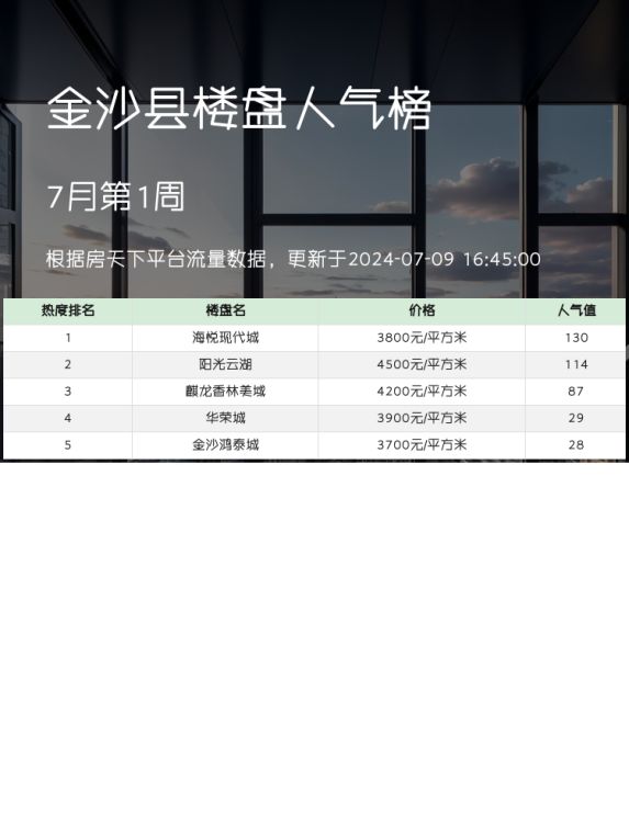 金沙县人气楼盘榜单,热度第一名竟是海悦现代城!