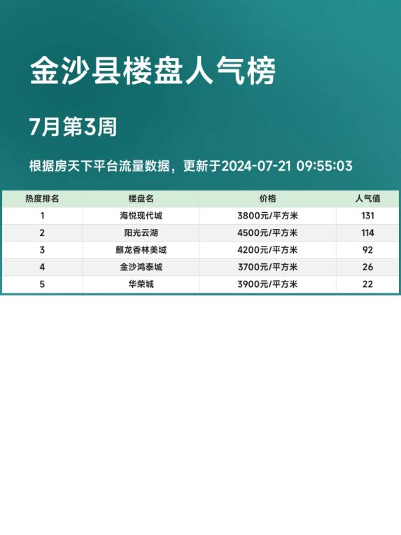 以上就是金沙县人气楼盘榜单中的前三名🏠,希望对正在选房的你有所帮助😉!