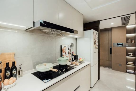 但要注意厨房开间稍窄,爆炒党得重新规划动线