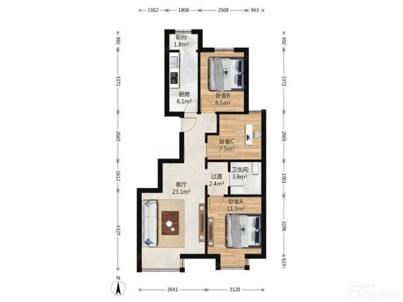 忍痛割爱!通州润枫领尚南北通透三居室