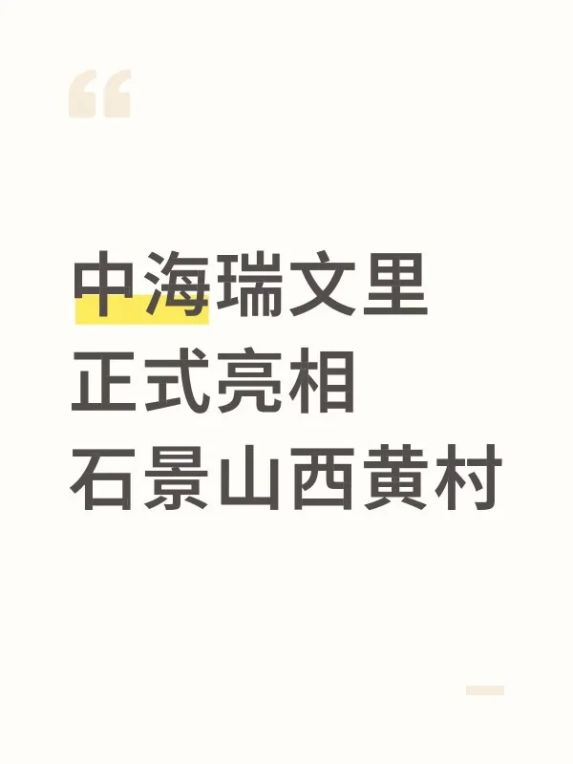 🏠京西首座中海好房子,中海瑞文里正式亮相!