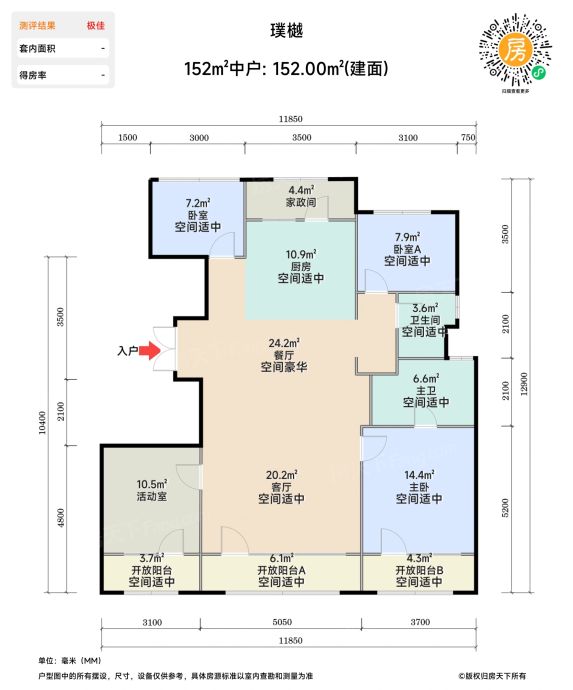 ②152㎡四居室全明格局是亮点,7.2米大面宽客厅秒杀同环线竞品。但有个隐藏bug:主卫动线会经过衣帽间,晨起高峰期可能有使用冲突。对比周边紫京宸园,得房率高出3%确实香。