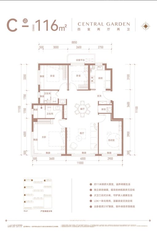 ②300万级户型碾压链:市面同价位还在做"中间户北向采光",璟贤瑞庭94㎡硬核植入南向三面宽+双卫配置。116㎡四居甚至做到11米总面宽,主卧套间尺度看齐千万级改善盘。