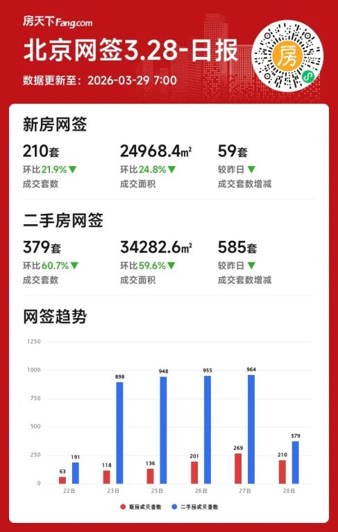 2026年03月28日北京楼市月度成交翻倍,单日数据回调