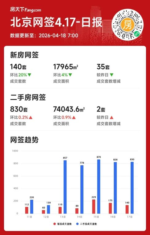 2026年04月17日北京新房月成交暴涨近七成,市场热度分化