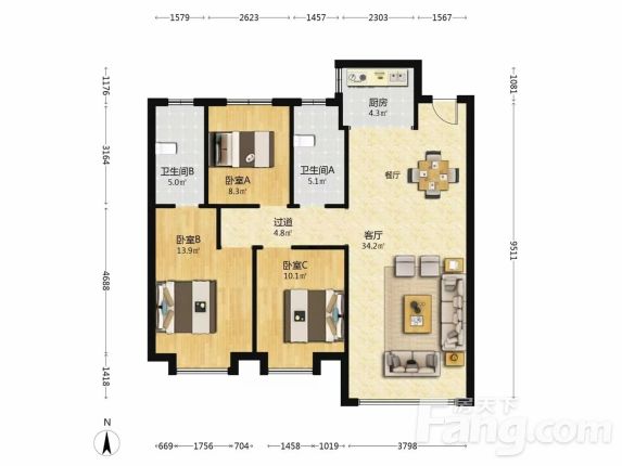 我家这套房子在13层,总高27层,楼间距很大,视野开阔,采光无敌!建筑面积约118㎡,三室两厅两卫,南北通透,尤其是客厅和主卧朝南,阳光洒进来的感觉特别温馨。户型设计也很合理,动静分区,住起来特别舒服。