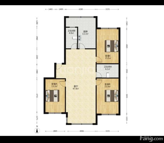 五星花园 3室2厅 140.78㎡ 49万 步梯四楼 南北通