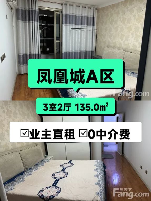 标题:自家凤凰城大三居出租!南北通透135平只要2000💰