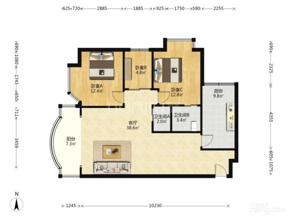 金牛 新世界丽晶花园 3室2厅 105.61㎡ 229万