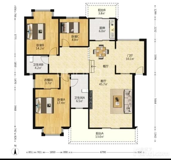 天府新区 南阳锦城 3室2厅 146.99㎡ 154万