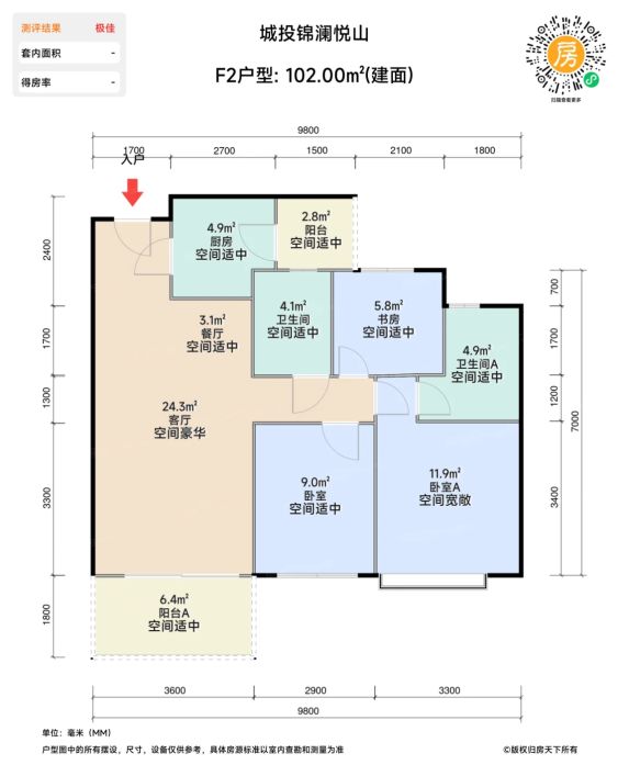 成都城投集团作为市属国企,在工程质量和交付保障方面具备优势。项目规划8种在售户型,主力产品涵盖102-143㎡面积段。其中143㎡四居户型实现9.8米客餐厅面宽,102㎡三居户型设置多功能书房,全系产品南北通透率达100%。