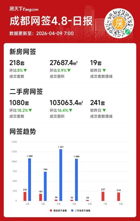 2026年04月08日成都楼市降温?新房二手房成交环比齐跌