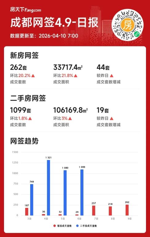 2026年04月09日成都楼市快报:新房单日成交环比涨两成!