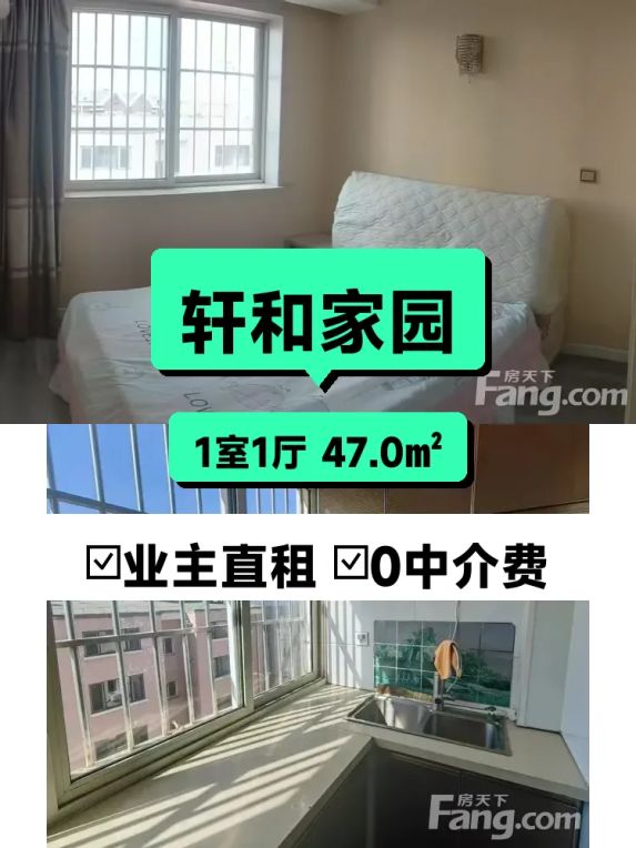 标题:自家南向一居室出租🌞轩和家园47平仅600/月