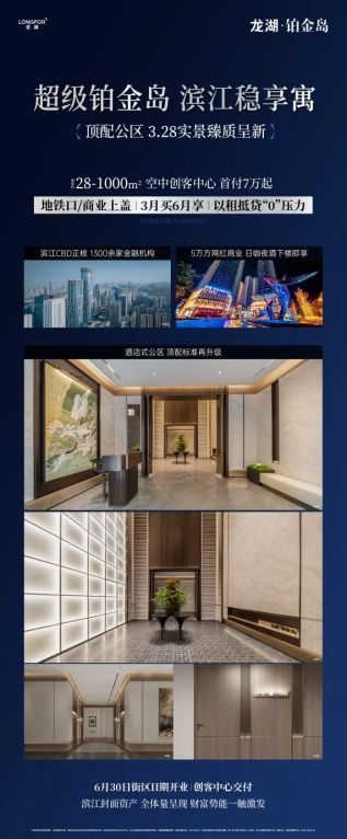 在滨江金融中心 河西地标对面,龙湖铂金岛最后一栋公寓清盘,周边380万方写字楼集群,商场学校银行众多,人流量超大,投资办公自住都不错
