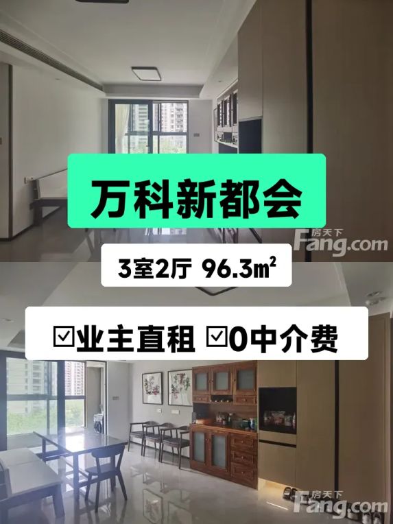 标题:自家万科精装三房出租✨南北通透拎包入住