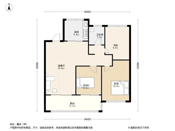 ▫️ **96㎡南北通透三房**,5楼采光无敌!两个卧室+书房全明设计,夏天不开空调都凉快~