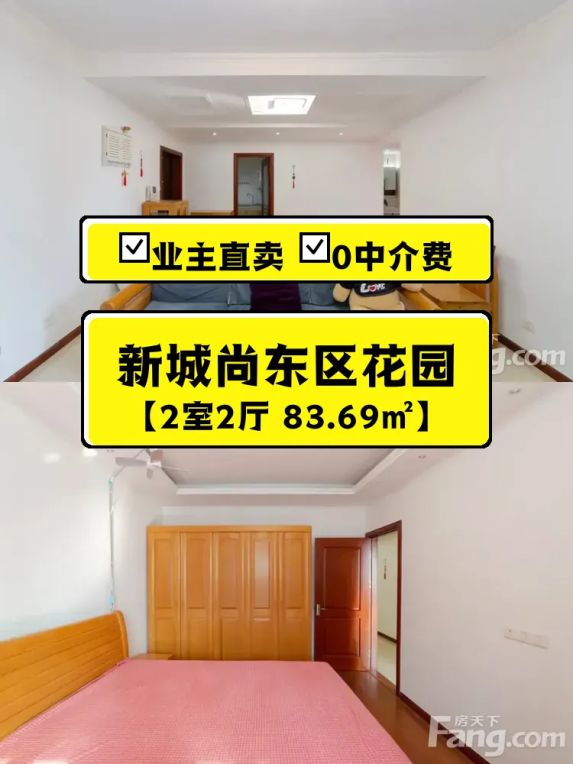 标题:自家南向两居室诚意出售,新城尚东区花园好房🏠