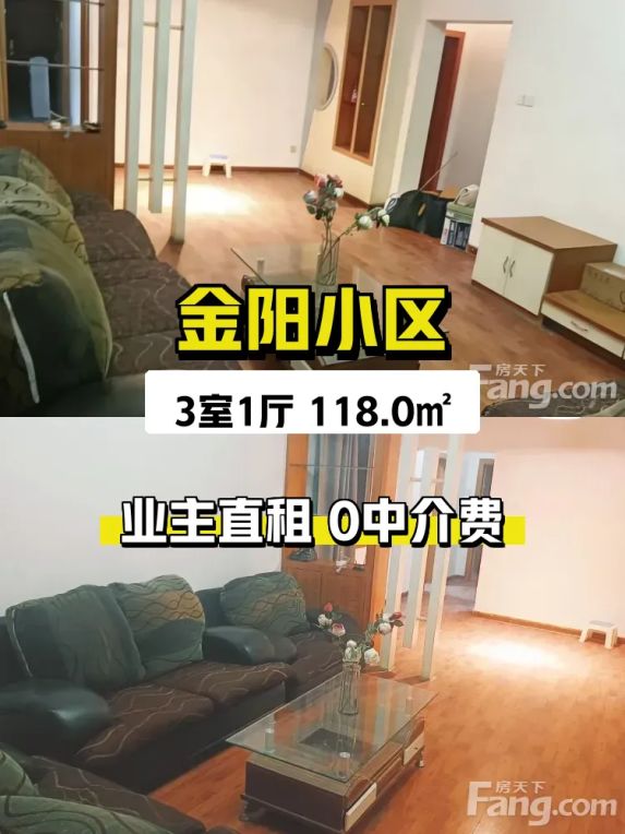 标题:自家金阳小区大三房出租啦!118㎡南向通透,900/月起✨