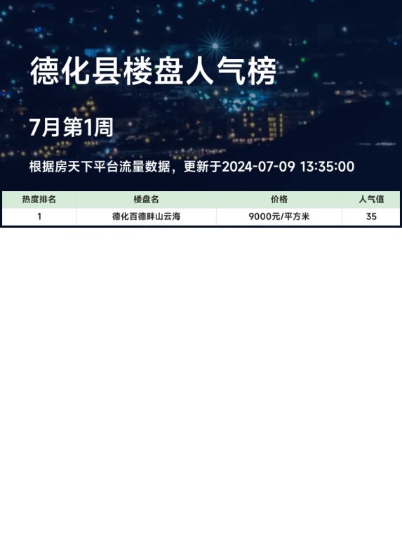 德化县人气楼盘榜单,百德畔山云海荣登榜首🏠