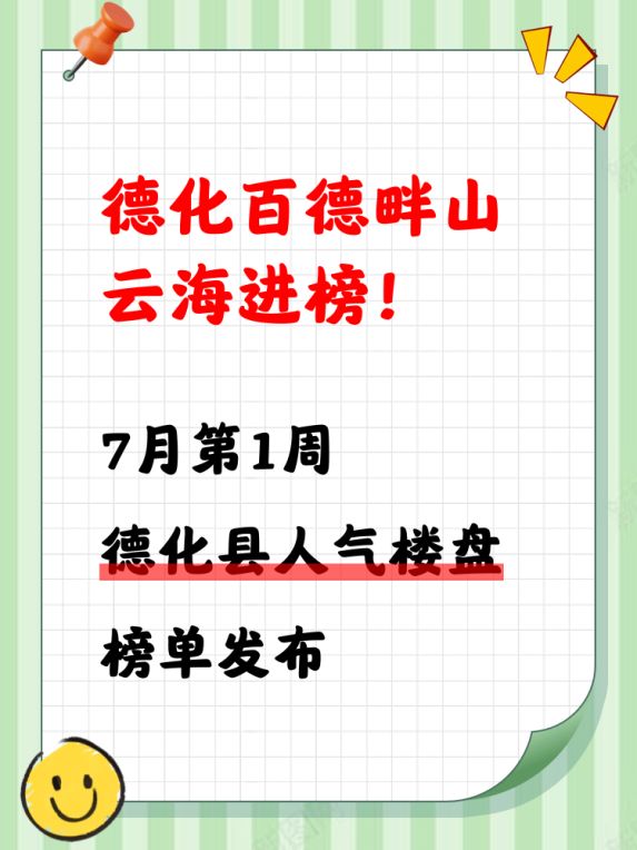🔍购房者们看过来!选房的关键是什么?当然是找到高人气、高性价比的楼盘!今天我们来看看德化县的人气楼盘榜单,为你提供一些购房参考。当前市场,选房不仅要看价格,还要看地段、配套和未来升值潜力哦!
