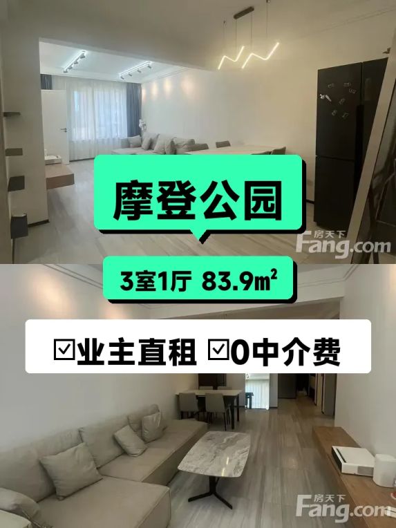 标题:摩登公园南北通透三居室✨自家新房直租啦!