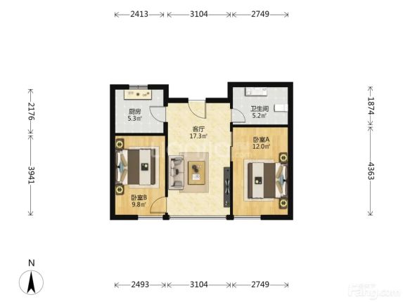 开发区 银帆国际 2室1厅 75.09㎡ 63万