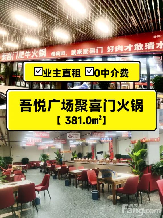 🔥自家旺铺出租!吾悦广场381平火锅店,客流量爆棚,年付13.9w可谈!