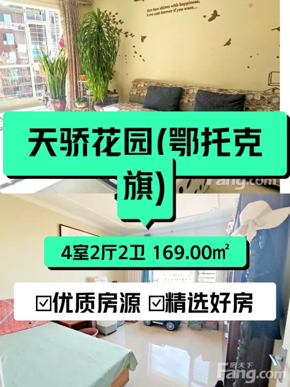 我家这套房子在天骄花园,位置在鄂尔多斯市东胜区纺织东街,是个特别安静又方便的小区。房子是169㎡的大四居,两厅两卫,住着特别宽敞舒适。我家在8楼,一共21层,采光特别好,因为是南向的,每天阳光都能洒满整个屋子,冬天暖洋洋的,夏天也不会太热。
