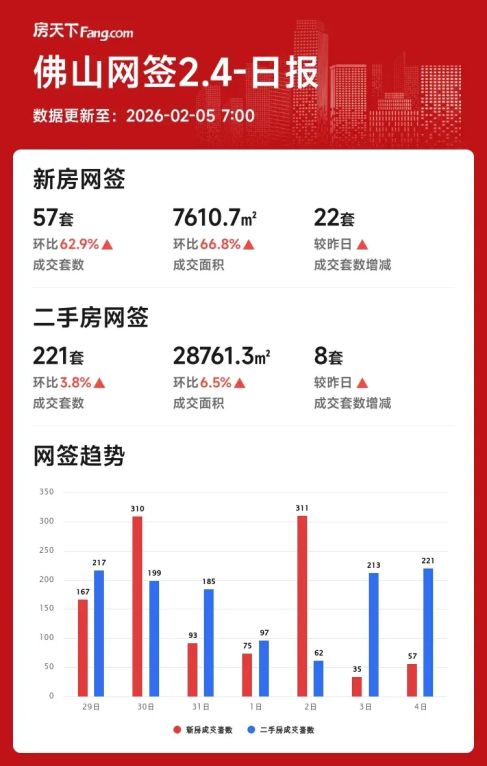 2026年02月04日佛山楼市单日回暖?二手房成交221套!