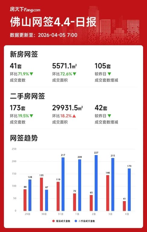 2026年04月04日佛山楼市分化:新房成交骤降七成,二手房面积逆势增长
