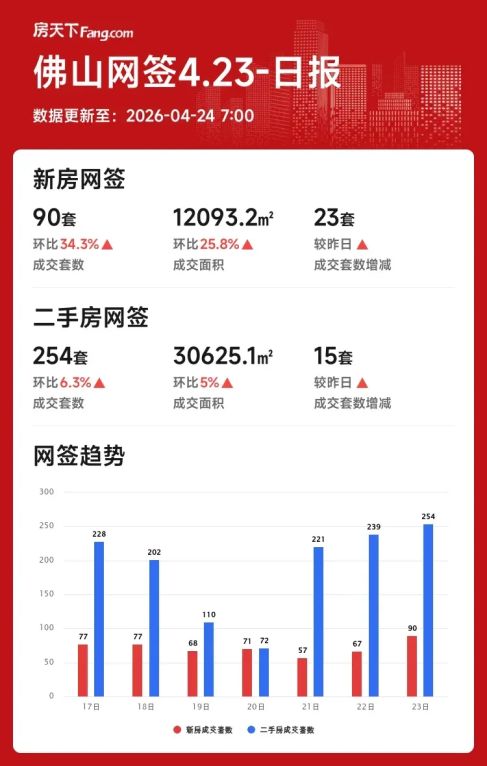 2026年04月23日佛山楼市分化:新房日涨月跌二手稳中有升