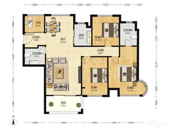 标题:自家章江新区132平四房,南北通透好楼层🏡