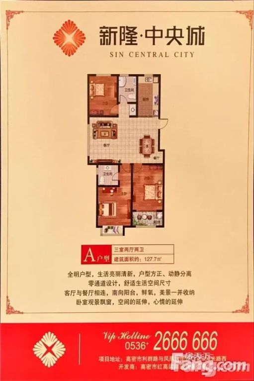 密水街道 新隆中央城 3室2厅 133.28㎡ 120万
