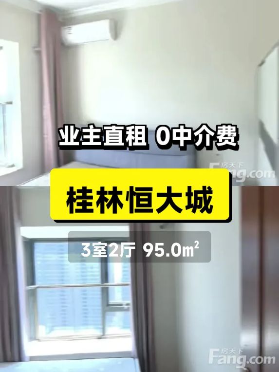 标题:自家精装大三房出租!桂林恒大城95平南向阳光房🌞