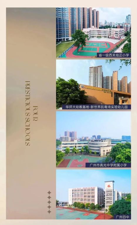 包括华师大幼教基地新世界凯粤湾实验幼儿园、西关培正小学、广州四中、真光中学附属小学等强校,全在家门口,孩子上学更安心!凯粤湾江景现楼即买即享!