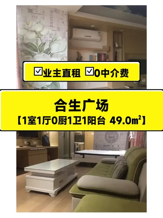 业主直租!合生广场49㎡豪华一居,下楼就是万达,4200/月