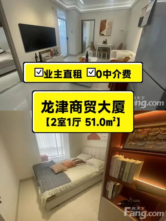 标题:自家龙津商贸大厦两房出租,南北通透随时入住🏠