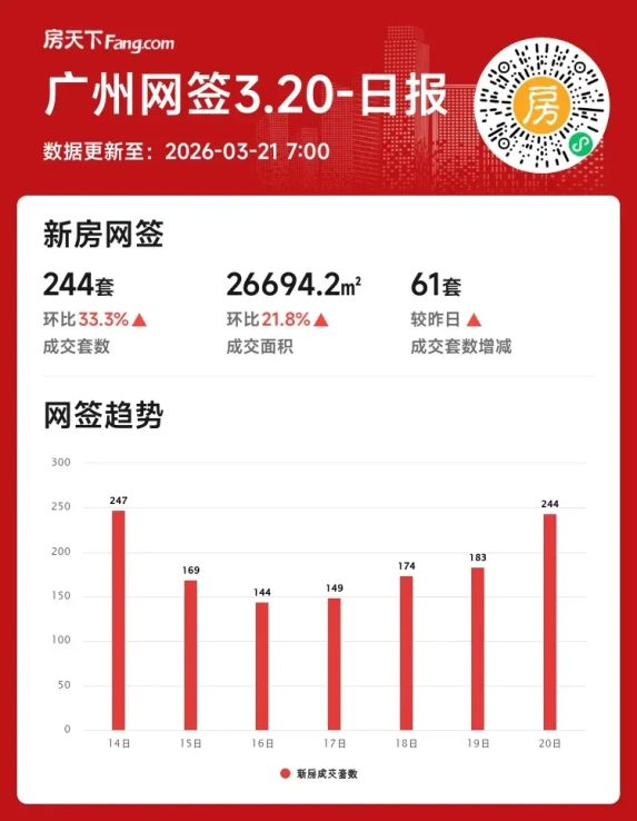 2026年03月20日广州新房市场热度飙升!日成交环比涨超三成