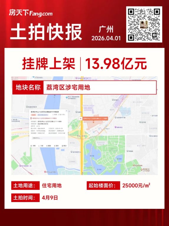 广州荔湾区地块上架!4月9日土拍!