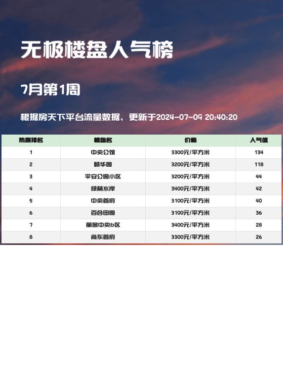 无极人气楼盘排行榜:中央公馆热度第一!