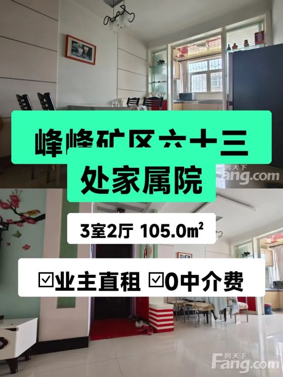 终于决定把自家住了多年的房子租出去啦!✨ 这套房在峰峰矿区六十三处家属院,105㎡的三室两厅,南北通透的户型,阳光从早晒到晚🌞,每个房间都亮堂堂的~
